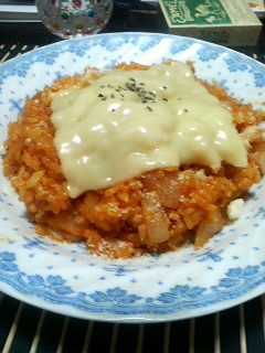 今日の夕飯=冷ご飯でケチャップごはん♪